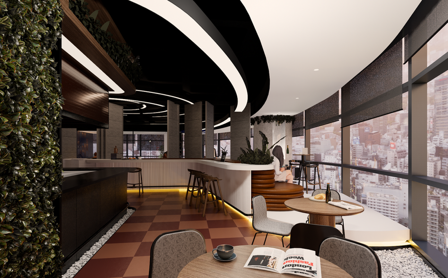 Pencere önündeki alanda tasarlanan zemin ve tavandaki mekanı taklit eden hareketler ile birbirine bağlanan köşede bitkiler ve kullanıcılar için ışıktan tam anlamıyla yararlanılmıştır. Bu alan, İstanbul manzarasını seyreden ve tadını çıkaran insanlar için gerçekten rahatlatıcı bir dinlenme alanı haline geliyor. Aynı zamanda çalışma alanı ile dış ortam arasında bir tampon görevi görüyor. Mekanda bitki kullanımına oldukça önem verilmiştir. İnsanın yaşadığı her yerde bitki de yaşar. Yaşamın sürdüğünün en önemli kanıtlarından biri mekandaki bitkilerdir.